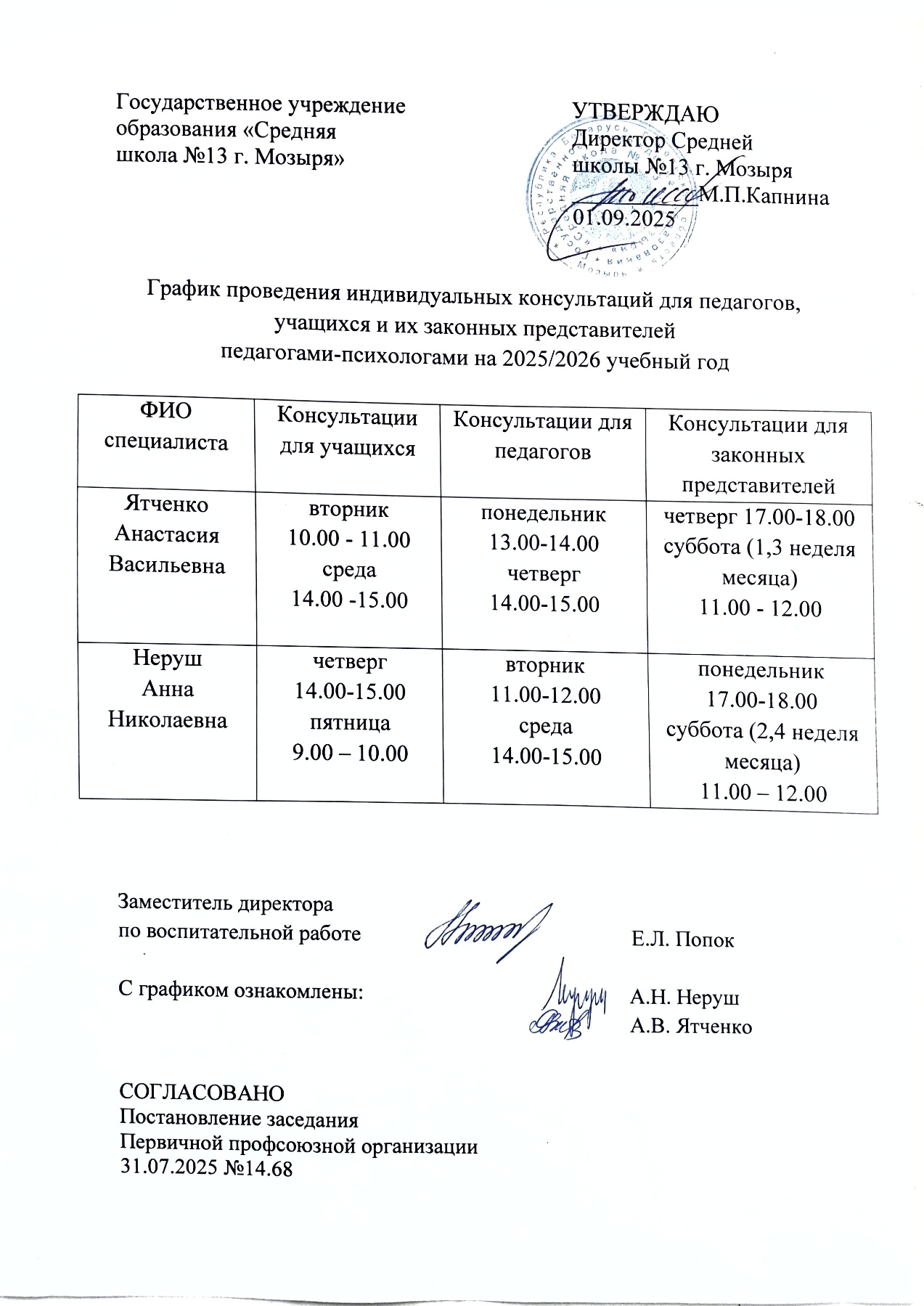 Мозырская центральная городская поликлиникаАдрес: ул. Котловца, 14 Психотерапевт - Зеленко Виктория Игоревна, тел. 8-029-98-64-807